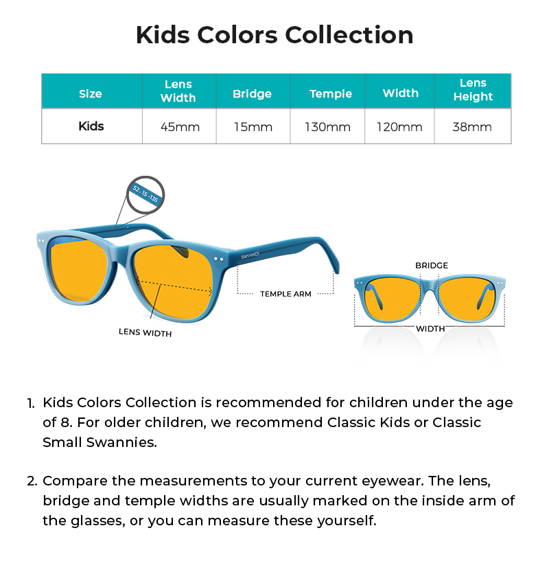 Kids are using phones, tablets, and video games like never before, and that’s not going away. Whether at home, school, or at a friend's place, the barrage of blue light almost never ends. The quantities of harmful blue light exposure kids endure today are simply unprecedented. The solution? Kids Crystal Day Swannies blue light blocking glasses. Protect their little eyes from headaches and digital eye strain during their crucial years of development and growth.