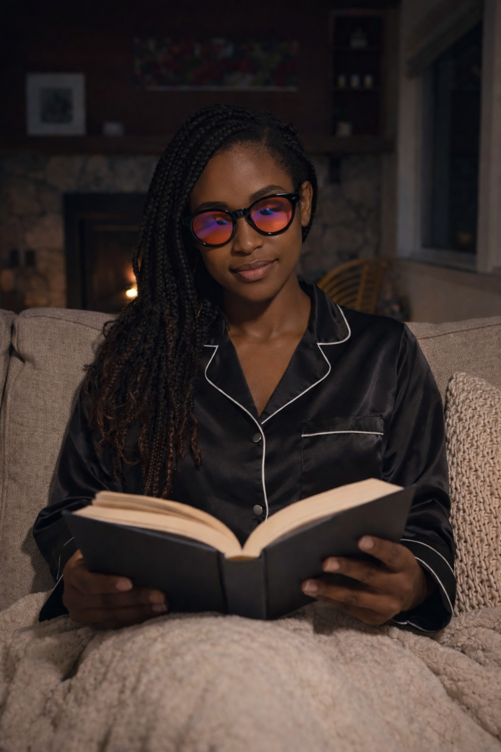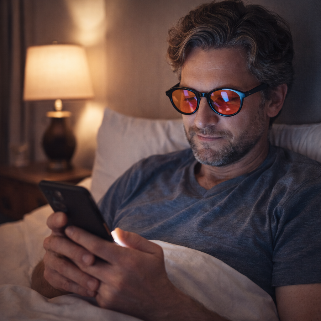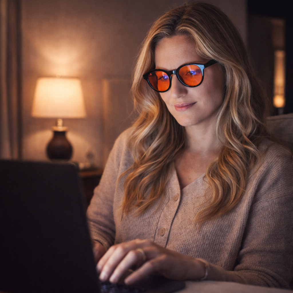 Designed to block 99% of stimulating blue and green light wavelengths in the evening, these amber lenses help prevent melatonin disruption so your body can naturally prepare for sleep. Wear them for 1-2 hours before your desired bedtime while in light or using a screen for more restorative sleep. Reduce visual stimulation and eye strain during nighttime scrolling, gaming, TV, or work—while remaining stylish and lightweight with prescription-grade lenses, acetate frames, and comfortable spring hinges for effortless everyday wear.