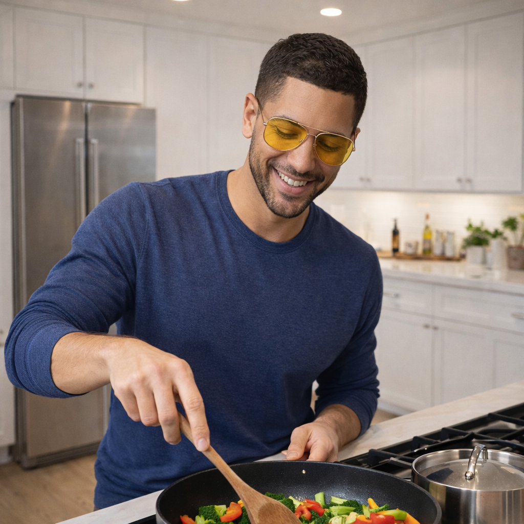 Relax Swannies are designed for the hours after work, when you want to unwind without disconnecting. The soft yellow lenses gently reduce blue light to help your body transition out of “work mode,” without strong color distortion or an orange tint.