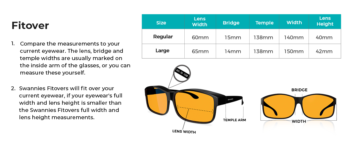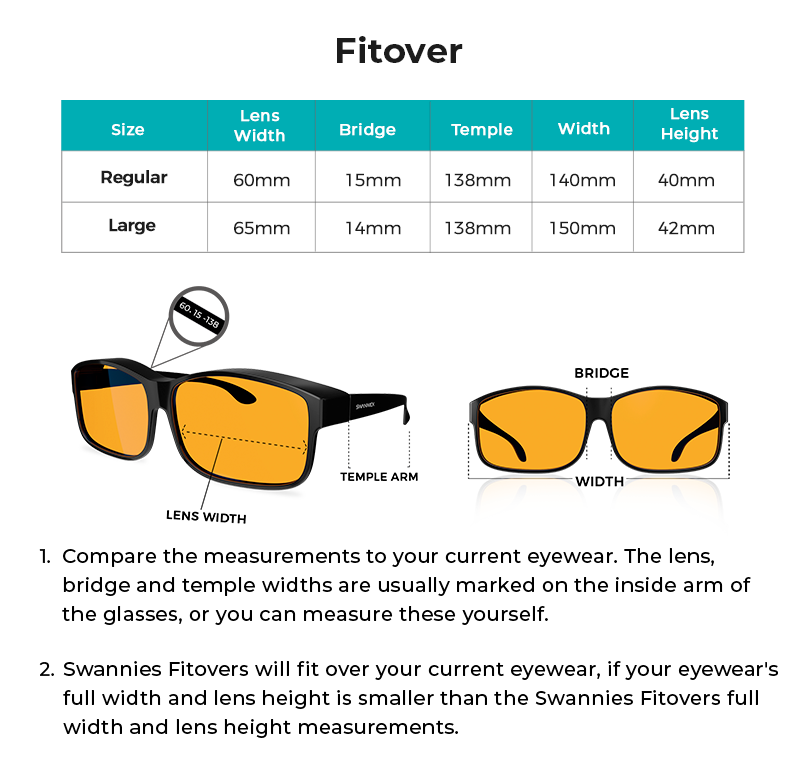 FITS OVER OTHER GLASSES Designed to be easily worn over another pair of glasses, and can also be worn on their own. |