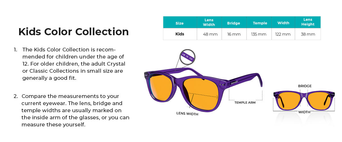 • Blue light stops, and so do things like digital eye strain, computer vision syndrome, tired eyes, headaches, and all the nastiness parents have to deal with when their child isn't feeling their best. Night Swannies blue light filtering glasses for kids come in fun colors that all ages, especially younger kids.