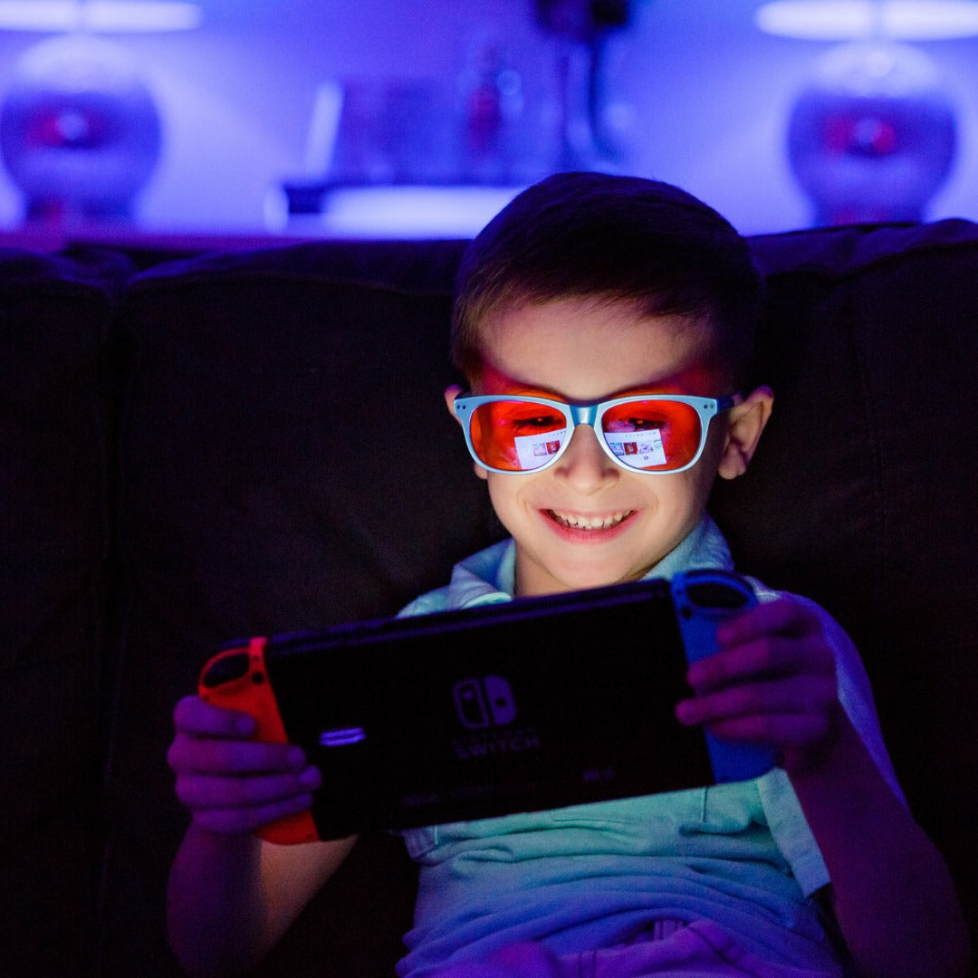 Science is revealing how exposure to blue light from devices like tablets, phones, and TVs can harm the growing eyes of children, not to mention causing major difficulties at bedtime for parents. Lack of quality sleep can cause problems in school as well as at home when motivation is key (that room STILL isn’t clean)?! Our solution – Kids Colors Night Swannies blue blocking glasses. These kids-size blue light blocking glasses protect young eyes from over 99% of harmful blue light, helping your child fall asleep faster and sleep more deeply all night long so you both can perform at your very best every day.